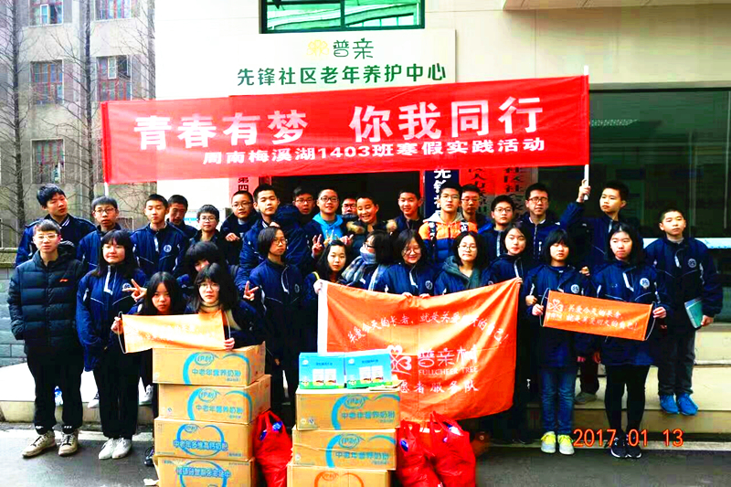 長沙周南梅溪湖中學于2017年1月13日向長沙普親老年養(yǎng)護中心先鋒站捐贈: