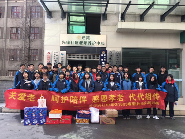 2018年2月1日,長郡中學(xué)高1605班向長沙普親老年養(yǎng)護(hù)中心先鋒機(jī)構(gòu)捐贈(zèng):
