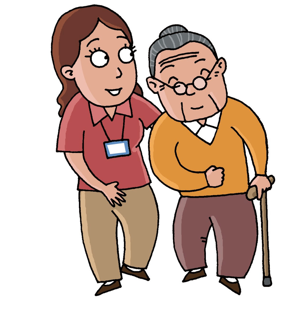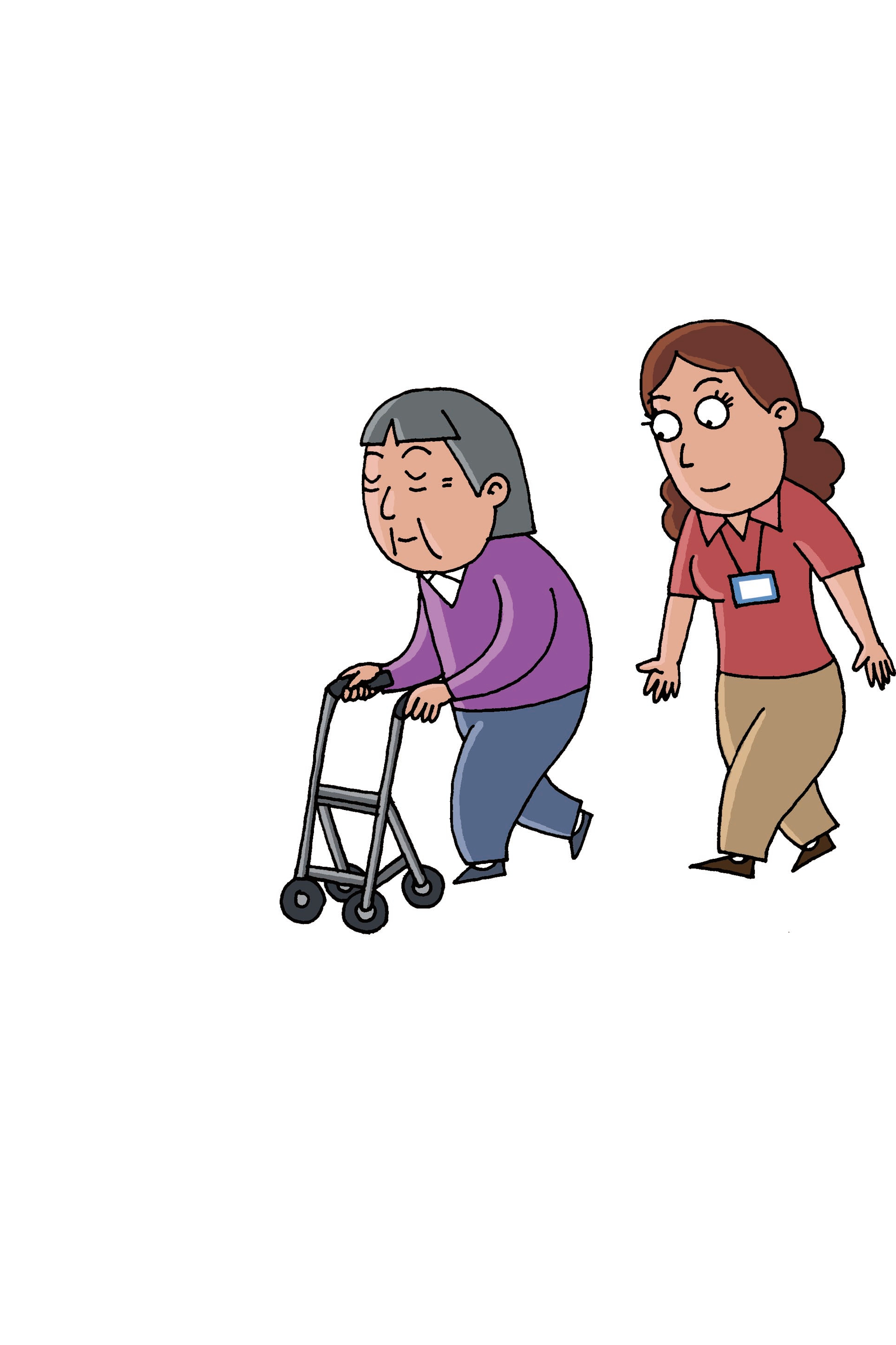 1、使用步行輔助工具時,護理員要站在患者患側(cè)一方,從后面支撐他們給予幫助。