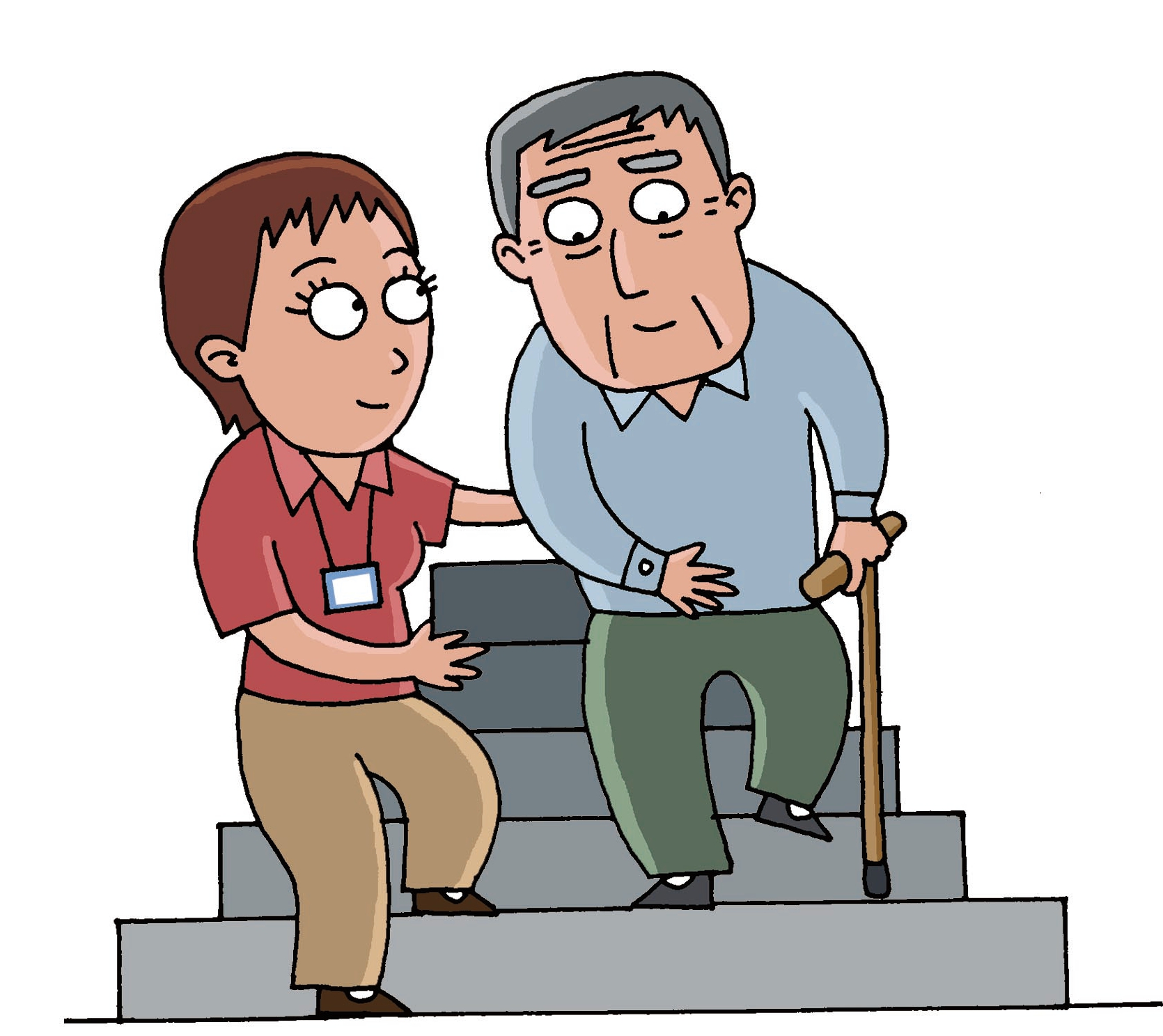 ★不管是上樓還是下樓時,護理員都要站在患者的下方一級臺階上,扶著患者的腰部。
