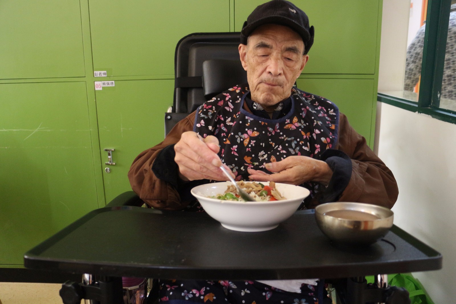 盧爺爺剛?cè)胱C(jī)構(gòu)的時(shí)候只能臥床,經(jīng)過(guò)在普親的慢慢康復(fù)后,目前不僅能夠坐立活動(dòng),還可以自己進(jìn)餐,棒棒噠。