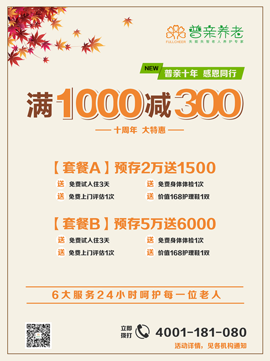 普親養(yǎng)老的十年,離不開每一位可愛的老人和每一個給予信任的家庭,為了回饋大家,普親養(yǎng)老策劃了本次以“感恩”為主題的十周年大特惠活動,除了繳費享減免的優(yōu)惠活動外,還能收到我們準備的活動大禮包,試入住、全面體檢、上門評估、老年專用護理鞋通通免費送給你!