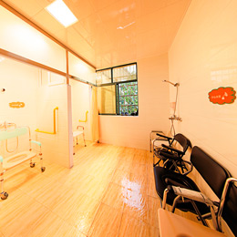 機(jī)構(gòu)內(nèi)的無障礙設(shè)計(jì)充滿人性化,鋪設(shè)防滑地板磚(地膠),洗浴區(qū)、馬桶旁、走廊過道、房間均裝有安全扶手。