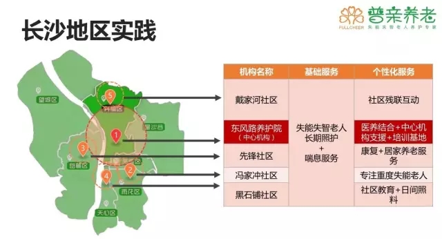 普親是一家民營機構(gòu),從2000年就開始思考做養(yǎng)老,期間涉足過候鳥養(yǎng)老,日間照料,健康培訓(xùn)等等,經(jīng)過一路的摸爬滾打,直到2010年,普親將目標群體調(diào)整為具有剛性需求的失能失智老年人,率先在業(yè)內(nèi)提出“失能失智”的市場細分概念,并將自身品牌定位于“失能失智養(yǎng)護專家”。2015年,湖南省健康養(yǎng)老產(chǎn)業(yè)投資基金的注入,為我們提供發(fā)展動力和資金,使我們走上了發(fā)展的快車道。