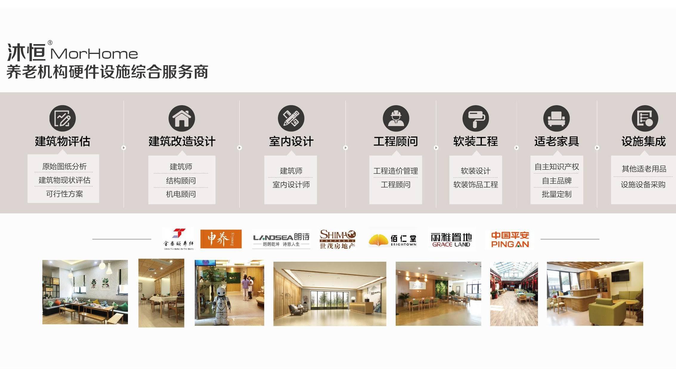 大家下午好,很高興有機會跟大家一起分享。我是上海沐恒實業(yè)有限公司的黃鯤。沐恒是一家養(yǎng)老機構(gòu)硬件設(shè)施綜合服務(wù)商,擁有建筑物評估,建筑改造設(shè)計,室內(nèi)設(shè)計,工程顧問,軟裝工程,適老家具,設(shè)施集成七個服務(wù)環(huán)節(jié)。