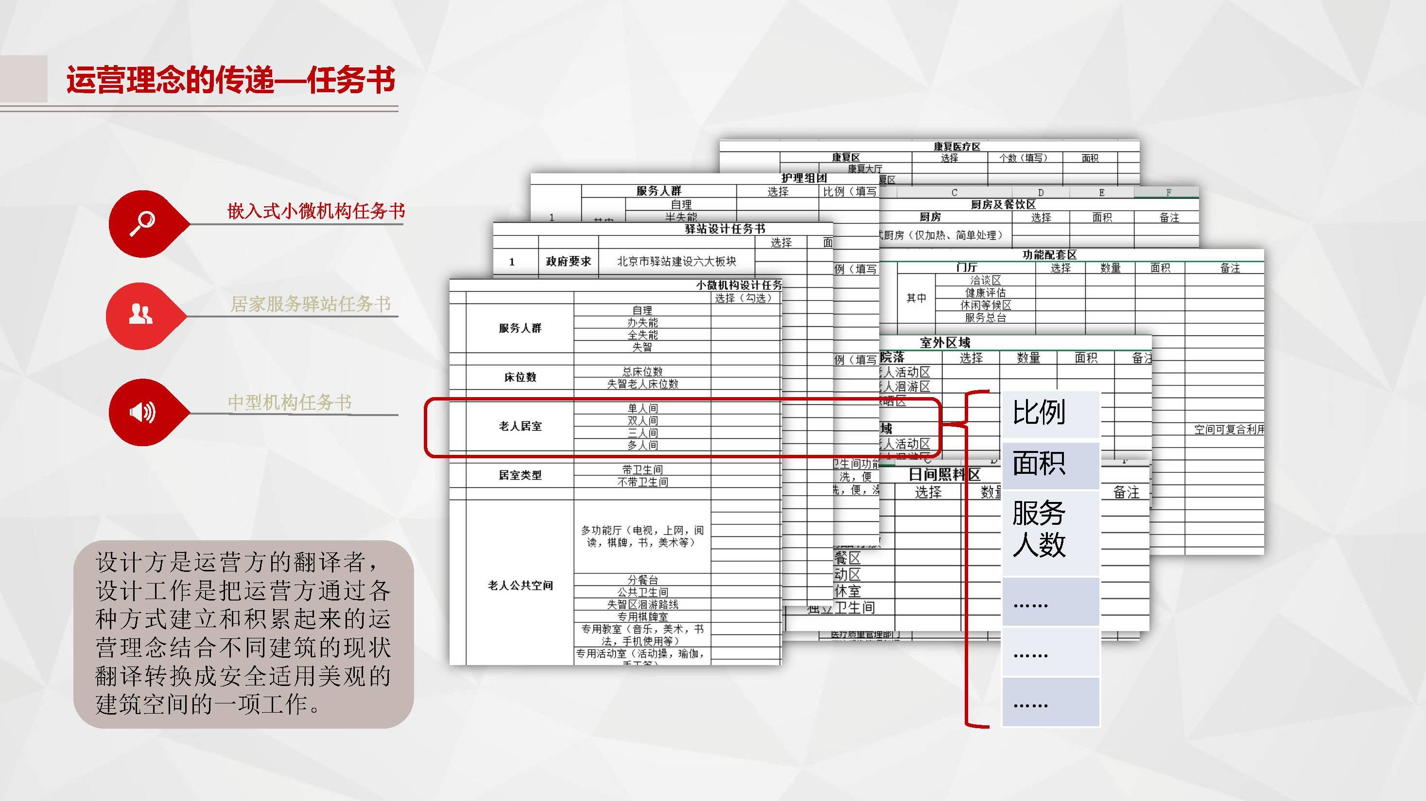 任務(wù)書包括建筑結(jié)構(gòu)水暖電五個專業(yè),我們用三套形式去匹配居家服務(wù)驛站,嵌入式小微機構(gòu)和中型機構(gòu)三種不同的業(yè)態(tài)。