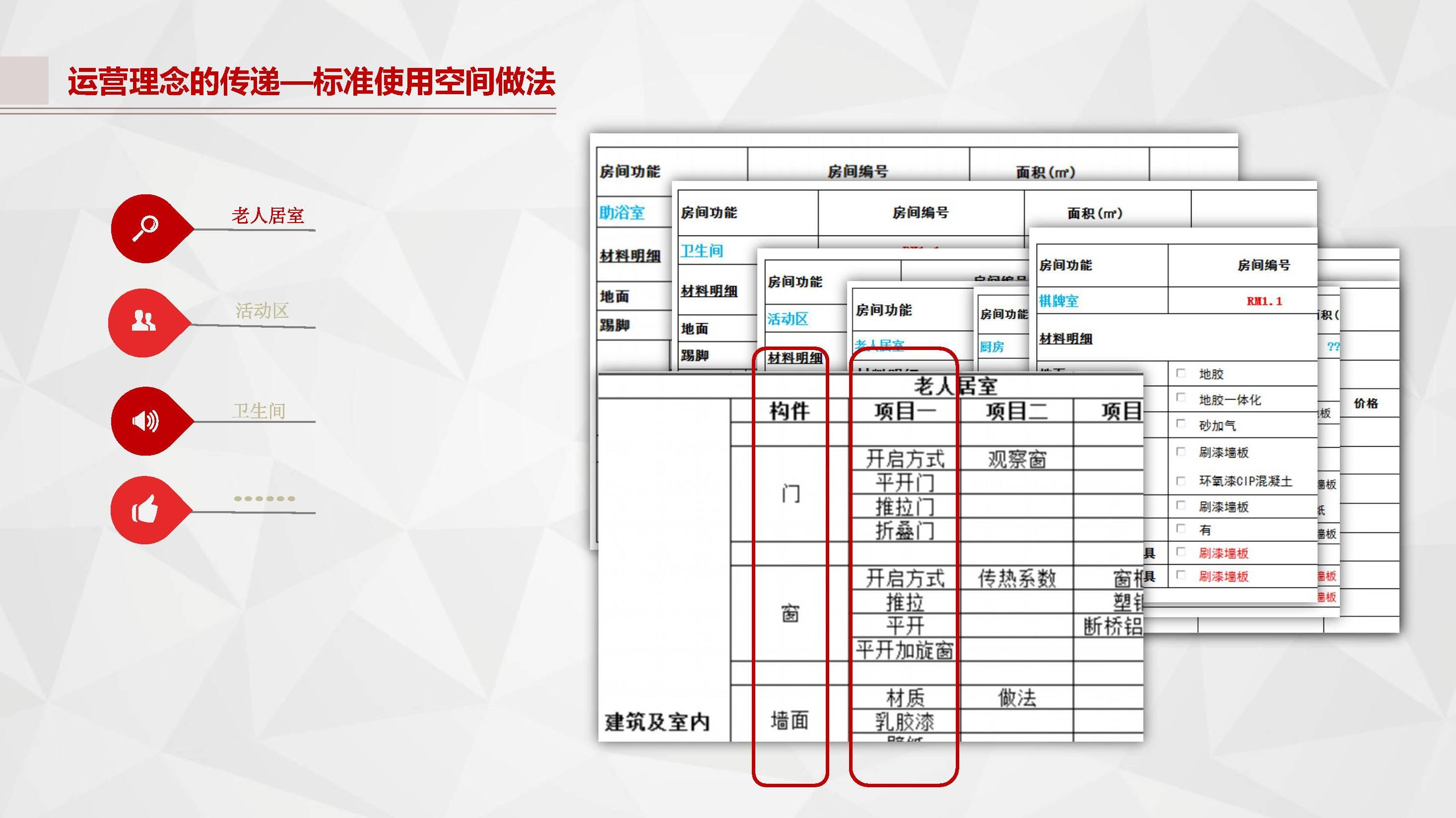 拿老人房間為例,里面有建筑和室內(nèi),設(shè)施設(shè)備,軟裝和家具的標準化等。