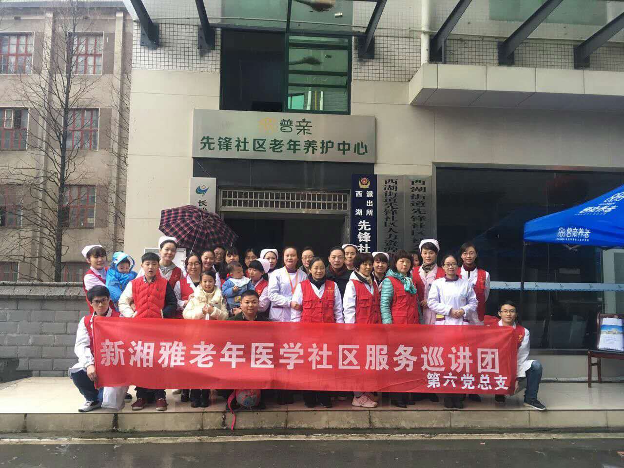 三月雷鋒月,濃濃醫(yī)患情,3月5日是毛澤東主席題詞“向雷鋒同志學(xué)習(xí)”五十四周年紀(jì)念日。恰逢周日,第六黨總支書(shū)記劉麗組織老年醫(yī)學(xué)科涂秋云教授及科室全體醫(yī)護(hù)人員,聯(lián)同臨床營(yíng)養(yǎng)科、臨床心理科、康復(fù)醫(yī)學(xué)科、疼痛醫(yī)學(xué)科部分醫(yī)護(hù)人員組成“關(guān)愛(ài)夕陽(yáng)紅志愿服務(wù)隊(duì)”,開(kāi)展新湘雅老年醫(yī)學(xué)社區(qū)服務(wù)巡講活動(dòng)。