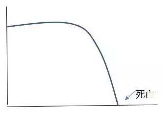 每年在美國(guó)有百分之六十的老人因?yàn)樗佣x世。為什么老人的腳會(huì)出問(wèn)題?人老了以后,無(wú)法彎腰夠到腳。不洗腳,代表著真正的疏忽和危險(xiǎn)。很多老年人上身穿得整齊講究,但脫下鞋,你會(huì)發(fā)現(xiàn)他的腳很長(zhǎng)時(shí)間都沒有洗過(guò),生了腳疾。當(dāng)腳疾被忽略時(shí),如果老人摔一跤的話就很有可能引致死亡。如果把人的健康狀況畫成一條曲線,那么其曲線看起來(lái)如圖: