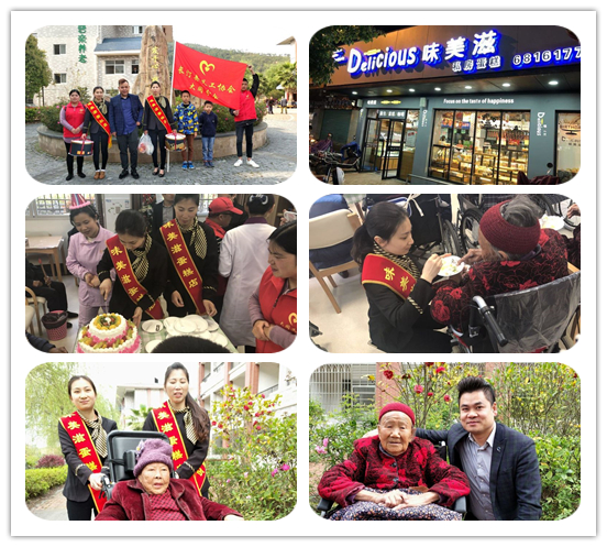 愛心商家長汀縣味美滋蛋糕店員工也曾一起參加過普親養(yǎng)護(hù)院老人生日會