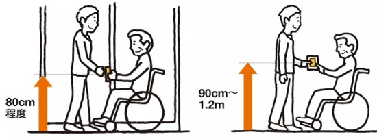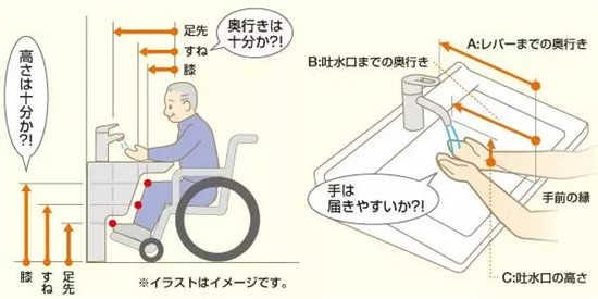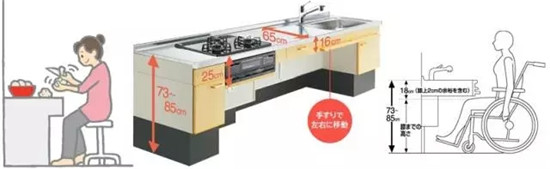 若為高齡人士(腿腳不便需輪椅老人),操作臺(tái)根據(jù)使用者腿部情況高度+18cm=約73~85厘米左右。