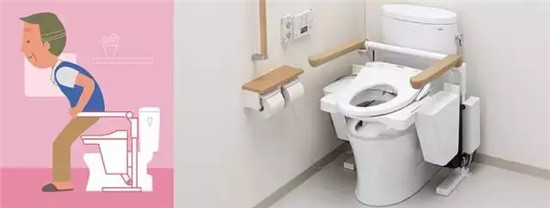 傳統(tǒng)馬桶較低,老人站立起較費(fèi)力,所以可以用輔高坐墊來增加5cm馬桶的高度!(圖片是電動(dòng)的,輔高便圈則很廉價(jià));另外馬桶兩側(cè)的把手使得老人如廁時(shí)有支力點(diǎn)。