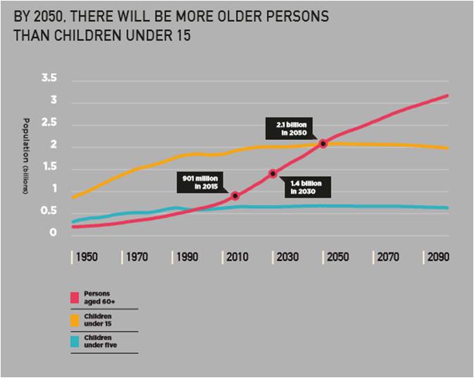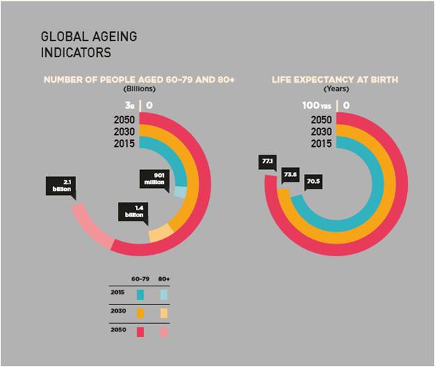 老齡化是全球每個(gè)國家正在面臨或即將面臨的問題。2015年9月,國際助老會(huì)發(fā)布了《2015全球老齡事業(yè)觀察指數(shù)》報(bào)告,報(bào)告指出:全球60歲及以上人口約9.01億,占世界人口12.3%。到2030年,這一比例將達(dá)到16.5%。