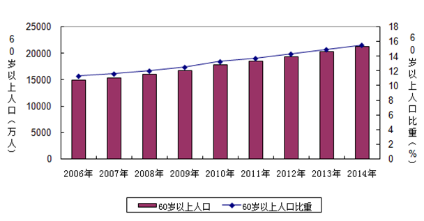 我國《2014年國民經(jīng)濟(jì)和社會(huì)發(fā)展統(tǒng)計(jì)公報(bào)》顯示,截至2014年底,全國60歲及以上老年人口約2。12億,占總?cè)丝诘?5.5%,其中65歲及以上人口約1。38億,占總?cè)丝诘?0.1%。