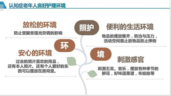 3,提供適當(dāng)?shù)沫h(huán)境刺激,包括運(yùn)用適當(dāng)?shù)纳省⒕坝^、老人熟悉的物件等激發(fā)老人的興趣和好奇心,但是要避免刺激老人產(chǎn)生幻聽、幻視等環(huán)境設(shè)計(jì),減少老人攻擊性行為的發(fā)生;