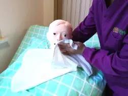 2)老人的準(zhǔn)備:取側(cè)臥位或平臥位,頭偏向一側(cè)(朝向照護(hù)員)。