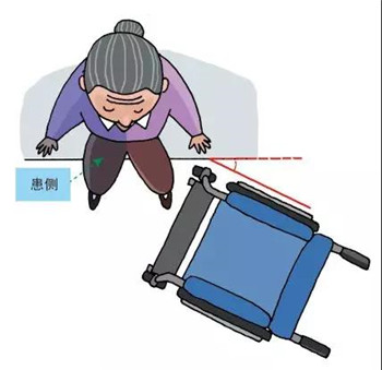 1、輪椅放置在老人健側(cè),以免轉(zhuǎn)移過程中因患肢無力而導(dǎo)致跌倒!