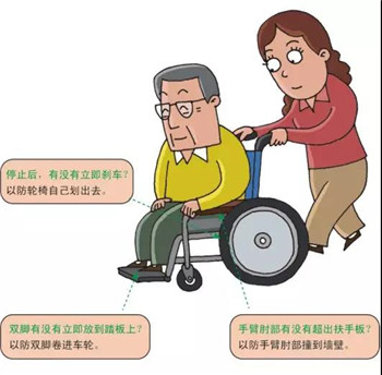 3、每次乘坐輪椅時間不可過長,每隔30分鐘幫助老人站立或變換體位,避免臀部受壓造成壓瘡。
