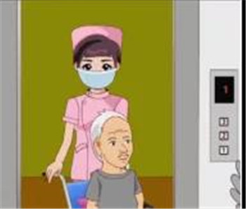 2)老人準備:操作前評估老人體重、目前病情與軀體活動能力,確認其能夠乘坐輪椅。
