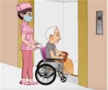 1)進電梯:照護員先進電梯,先抬起后輪進入,再抬前輪向后退,進門剎車。