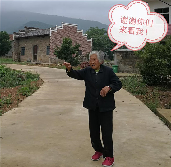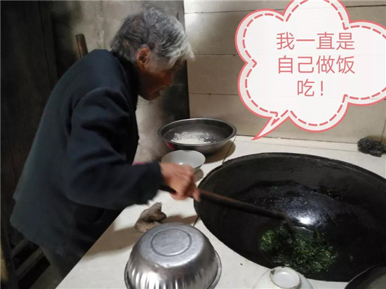 100多歲的周奶奶仍然自己做飯吃,看到幫扶小組走了依依不舍,一直把他們送到了村頭。