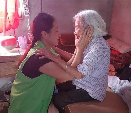 吳奶奶看到幫扶小組的到來非常開心,一個(gè)勁兒拉著主任和站長聊天。