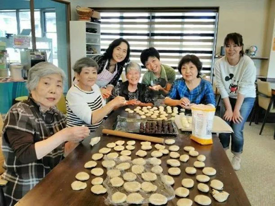 外來人員的義工活動。照片為筆者去一家養(yǎng)老機構(gòu),為日本高齡者做饅頭的場景。不出機構(gòu)也能嘗到海外美食。老人和護理員都很開心,為本次活動鼓掌。