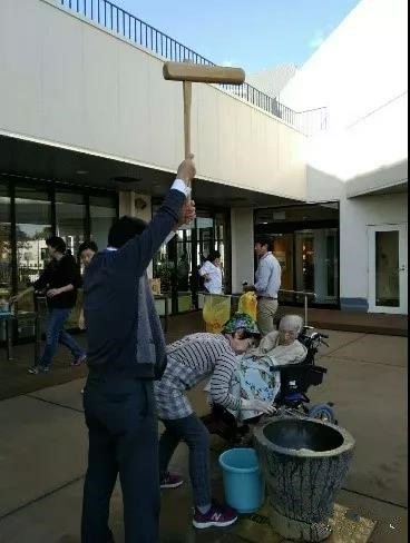 充滿季節(jié)性的活動-打年糕。老人、護理員、義工、社區(qū)居民的互動。