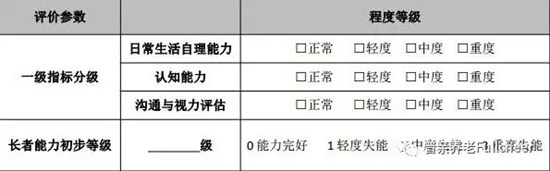 生活能力評估包括吃飯、大小便、穿衣等日常生活內(nèi)容,判斷老人能不能自己完成,自己有沒有感知。我們也會(huì)通過對老人的直觀感覺和家屬提供的信息來進(jìn)行判斷老人的溝通與視聽力能力。