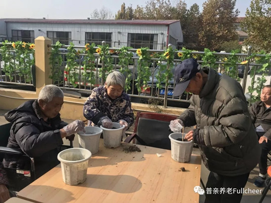 11月的深秋,在濟(jì)南市普親金悅老年養(yǎng)護(hù)中心,有一群老人正在忙著干活——種大蒜。