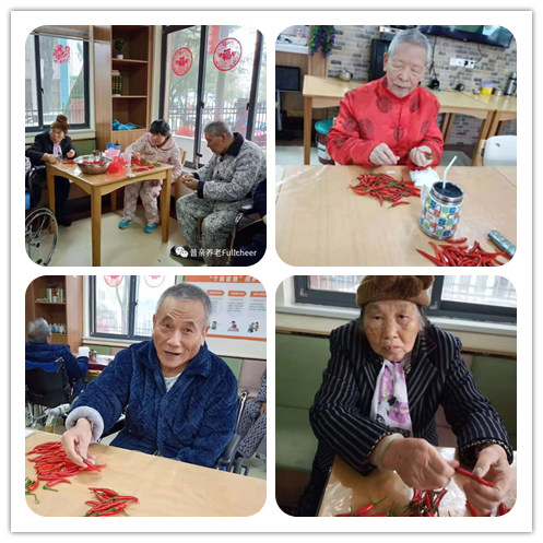 在衡陽市普親白沙洲老年養(yǎng)護(hù)中心,胡站長會(huì)定期組織老人做廚房工作,比如擇辣椒、擇豆角、剝花生等,每周一到兩次。