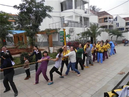 ▲2014年,�?谑衅沼H老年養(yǎng)護(hù)院護(hù)理團(tuán)隊(duì)進(jìn)行拔河比賽。