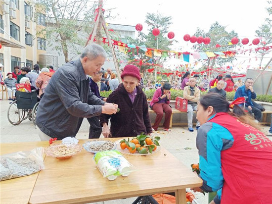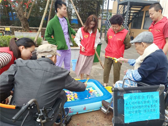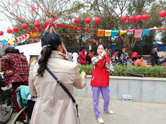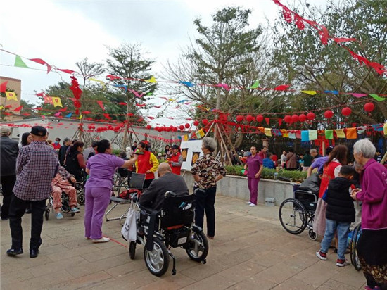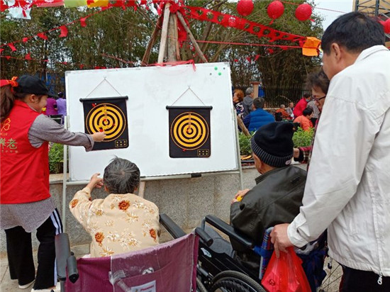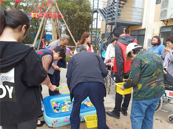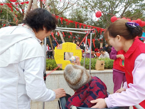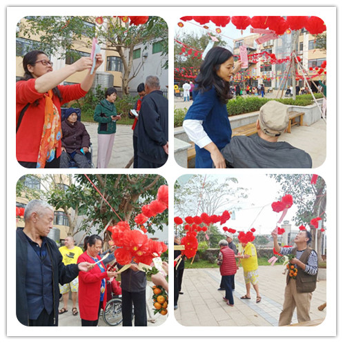 春節(jié),是熱鬧團(tuán)圓的節(jié)日,咱們?cè)簝?nèi)的老人離開(kāi)自己的家住在這里,大家就都是一家人,通過(guò)本次活動(dòng),咱們一大家子人聚在一起迎接新春,讓老人感受到濃濃的年味;另外,活動(dòng)以游園會(huì)的形式,將廟會(huì)搬到院內(nèi),邀請(qǐng)家屬前來(lái),讓老人再次感受和家人一起熱熱鬧鬧逛廟會(huì)的過(guò)年氛圍;而家屬不能前來(lái)的老人,有的和自己在院內(nèi)交到的好朋友結(jié)伴玩耍,也有的在工作人員的陪伴下游園,每個(gè)人都是在滿滿的關(guān)愛(ài)下感受到幸福;通過(guò)游戲獲得兌獎(jiǎng)券兌換禮品的方式,讓老人在參與中認(rèn)識(shí)到自己的價(jià)值,獲得成就感。人生道路,歲月更迭,每個(gè)人都曾有過(guò)光輝歲月,每個(gè)人也都會(huì)慢慢變老,而正如咱們?cè)簝?nèi)張奶奶說(shuō)的“我們是夕陽(yáng),可夕陽(yáng)照樣紅”