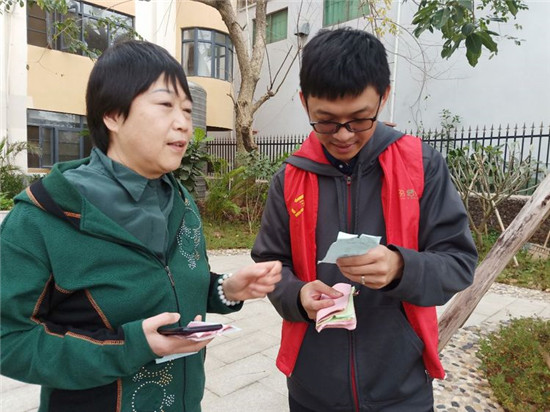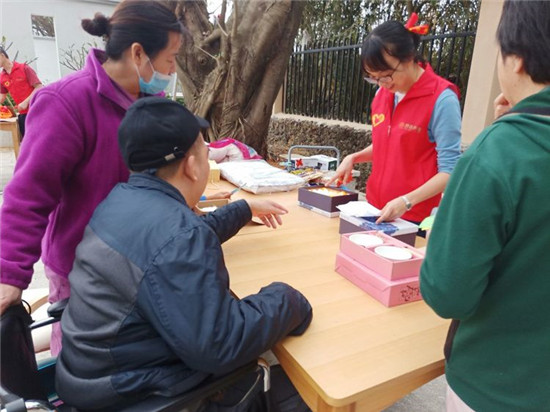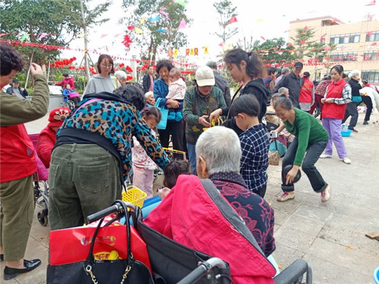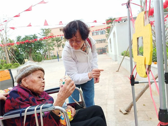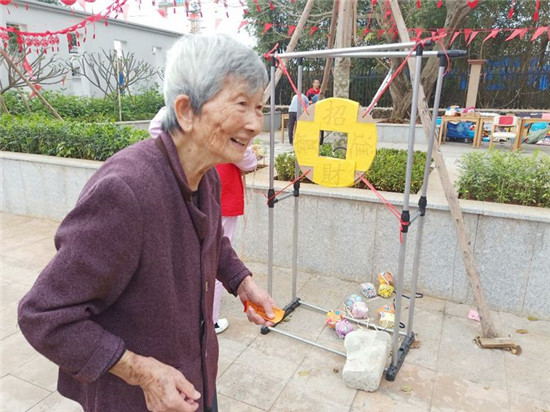“迎春接福之拋接球”,需要老人和家屬或者工作人員雙人配合拋接球,10次機(jī)會(huì)接到6個(gè)球就可以獲得兌獎(jiǎng)券呢,這可是很考驗(yàn)?zāi)醯模灰?jiàn)一開(kāi)始,大家要不扔太遠(yuǎn)啦,要不扔太低啦,很難接住,后來(lái)配合越來(lái)越默契,也有的家庭百發(fā)百中,這種默契度讓大家羨慕,領(lǐng)了兌獎(jiǎng)券繼續(xù)參加下一個(gè)游戲。