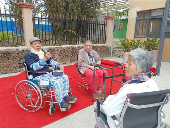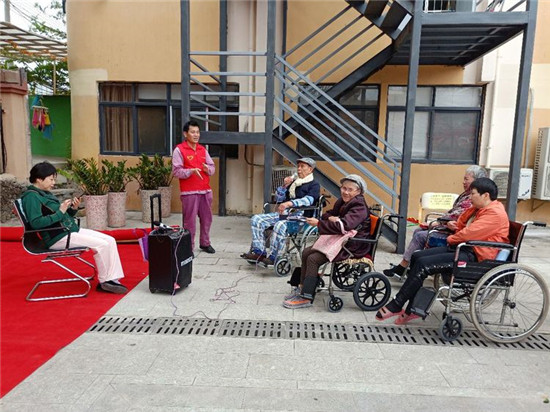 玩累了,咱還有休閑娛樂(lè)區(qū)呢,坐下吃點(diǎn)水果,零食,登上舞臺(tái)高歌一曲,或是邊吃著邊欣賞他人的表演,無(wú)比愜意。有的爺爺奶奶給前來(lái)的子女送上一首歌,有的家屬也給老人獻(xiàn)歌,有一位家屬拉著媽媽的手唱起了《世上只有媽媽好》,感動(dòng)落淚;也有老人和孫子合作演唱,看著一老一小唱起了歌,那種畫面無(wú)比幸福;還有咱們平時(shí)就很喜歡唱歌的爺爺奶奶,好聽(tīng)的歌聲吸引來(lái)許多人注目觀看。