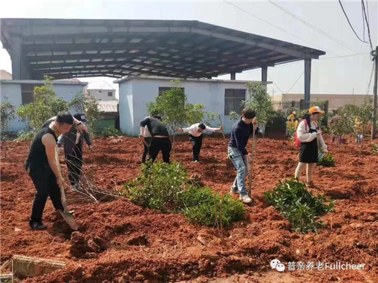 到養(yǎng)護中心來得勤了,荒廢的后院便引起了他們的注意�!安蝗绯弥矘涔�(jié)快要到來,在院子里種點樹,打造綠色機構(gòu)的同時,也為生活在這里的老人小孩創(chuàng)造更好的生活環(huán)境�!边@個想法與養(yǎng)護中心蔣院長的理念不謀而合,于是才有了這次盛大的植樹活動。