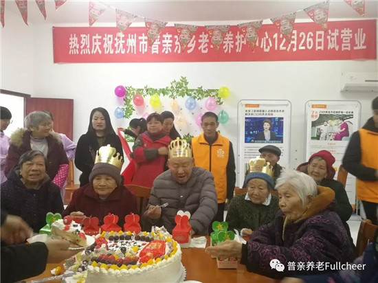 機構(gòu)試營業(yè)當(dāng)天為院里的老人過月度集體生日。