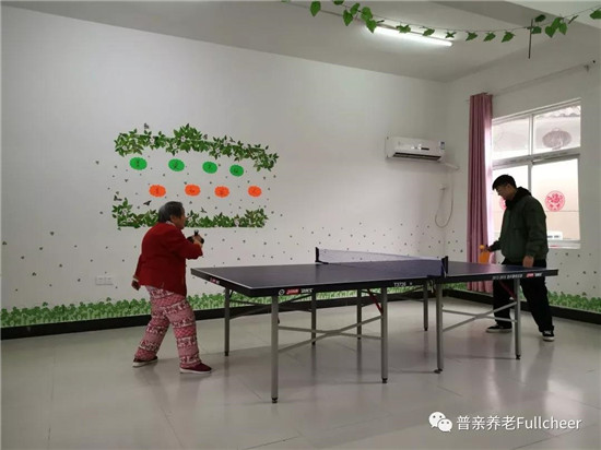 志愿者陪院里的奶奶打乒乓球(奶奶94歲了哦!身體依然棒棒噠)