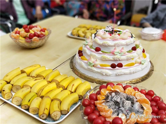 在咱們養(yǎng)老院過生日,除了“王中王蛋糕店”的經(jīng)典蛋糕,我們還會準(zhǔn)備很多水果。