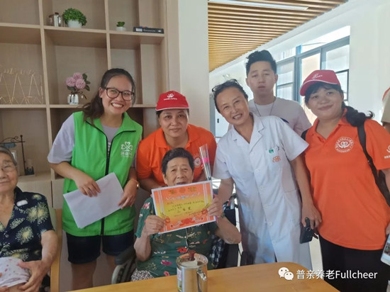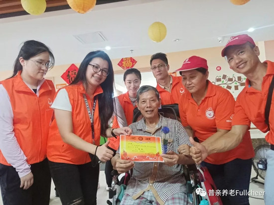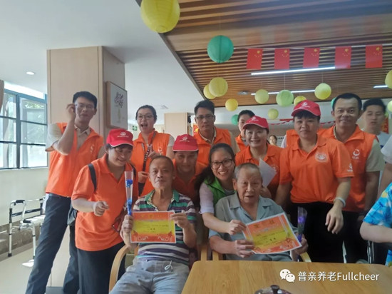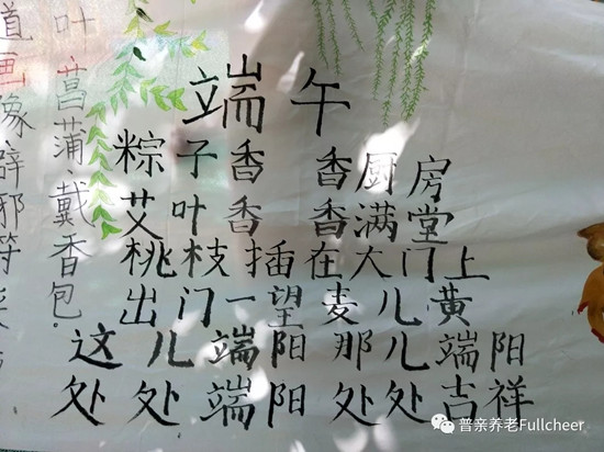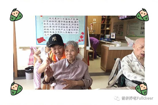 普親老年養(yǎng)護(hù)院同樣開(kāi)展了一場(chǎng)“快樂(lè)頑童,縱情端午”的主題活動(dòng),活動(dòng)邀請(qǐng)到了湖南女子學(xué)院的志愿者們,他們?yōu)闋敔斈棠處?lái)了精彩的詩(shī)詞朗誦、啦啦操、手語(yǔ)表演、紅歌串燒等,同時(shí)還組織了趣味的端午知識(shí)問(wèn)答,易爺爺,譚奶奶,袁叔叔就通過(guò)知識(shí)問(wèn)答贏得了端午小禮品,看到老寶貝們甜甜的笑容,“溫暖的是我們這些小寶貝的心�!�