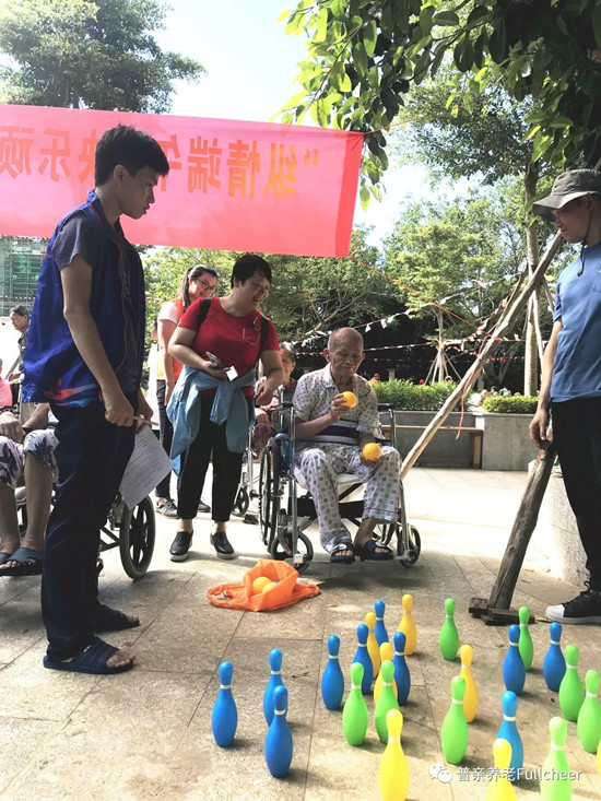 端午節(jié),�?谑衅沼H第二老年養(yǎng)護(hù)院舉辦的第二屆老年夏季運(yùn)動(dòng)會(huì)開(kāi)幕了,去年沒(méi)趕上第一屆運(yùn)動(dòng)會(huì)的爺爺奶奶們?cè)缫呀?jīng)躍躍欲試了,海南熱辣的溫度絲毫沒(méi)影響大家的熱情。在志愿者們的幫助下,爺爺奶奶們參加了釣魚(yú)、扔沙包、套圈圈、扔飛鏢、撈球、保齡球等項(xiàng)目,每個(gè)項(xiàng)目對(duì)應(yīng)相應(yīng)積分,最終成績(jī)會(huì)根據(jù)積分評(píng)出一二三等獎(jiǎng)。