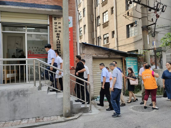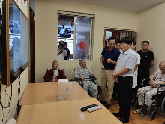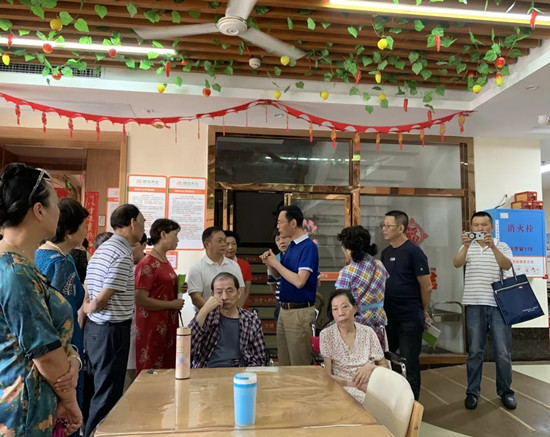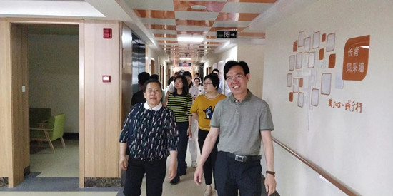 6月19日,湘潭市民政局副局長劉家梁、市老齡辦主任洪英及雨湖區(qū)民政局副局長湯望麗攜湘潭市人大常委會辦公室機(jī)關(guān)離退休干部黨總支一行70余人蒞臨湘潭市普親高嶺老年養(yǎng)護(hù)中心調(diào)研考察�?疾靾F(tuán)細(xì)致參觀了養(yǎng)護(hù)中心內(nèi)各功能區(qū),了解吃、穿、住、行、樂的全方位服務(wù)體系,對養(yǎng)護(hù)中心干凈整潔的環(huán)境、科學(xué)合理的適老化設(shè)計、專業(yè)服務(wù)的態(tài)度表示了認(rèn)可。