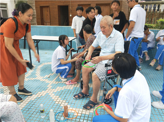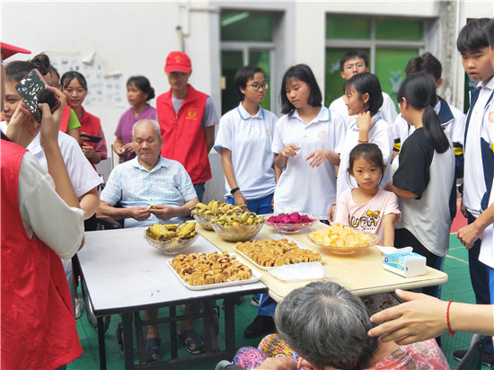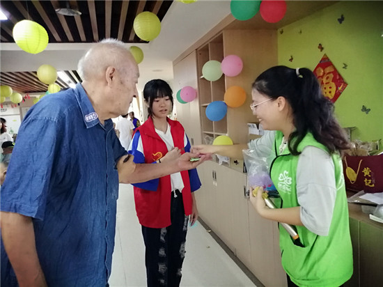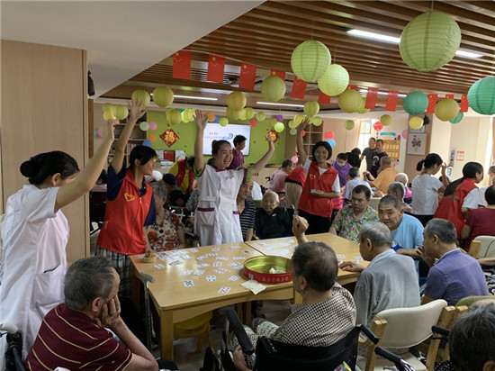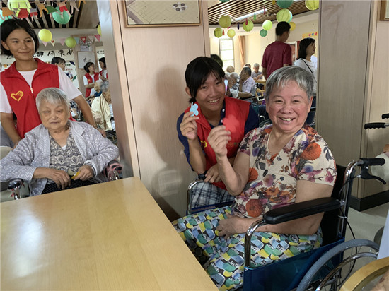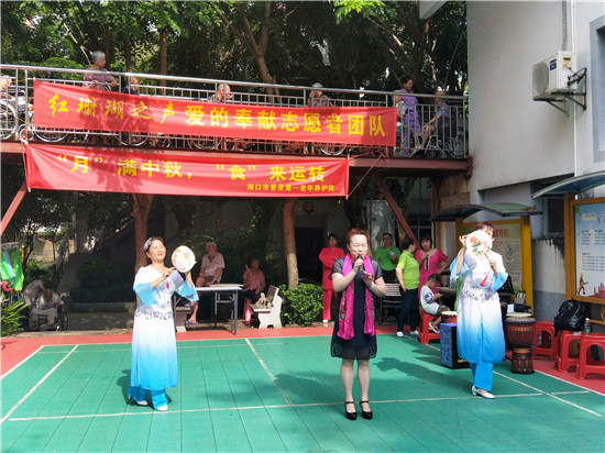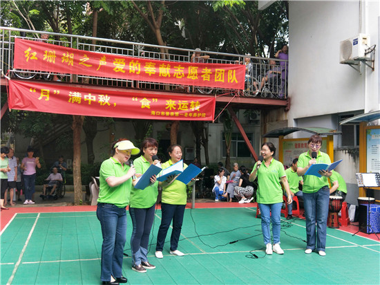 9月13日,�?谑衅沼H第一老年養(yǎng)護(hù)院開展“月滿中秋,食來運(yùn)轉(zhuǎn)”中秋節(jié)主題活動,邀請了紅珊瑚藝術(shù)團(tuán)、海南工商職業(yè)學(xué)院、瓊山中學(xué)、�?趯�(shí)驗(yàn)中學(xué)的同學(xué)們陪老人們一起過節(jié)。愛心志愿者們打起手鼓唱起歌,興致來了還熱舞一番,好不熱鬧。