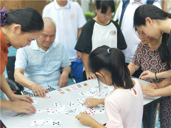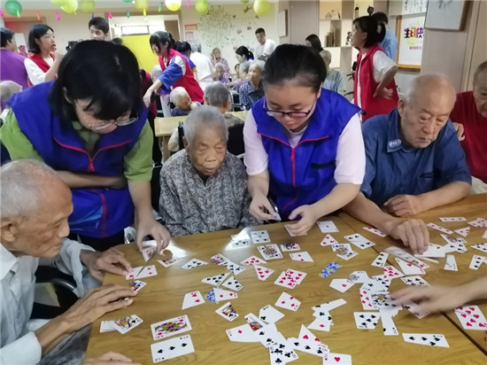 欣賞完志愿者們精彩的才藝表演,就輪到我們的主角上場了。在游戲會場上,人人都是深藏不露的王者,拼紙牌、套圈,老人小露一手就贏得志愿者們的陣陣掌聲。