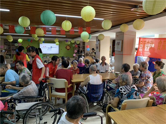 9月11日上午,南昌力高皇冠假日酒店的志愿者們來到南昌市普親朝農(nóng)老年養(yǎng)護(hù)中心,與長者一起提前歡度中秋。