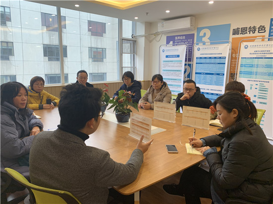 哺恩堂養(yǎng)老護(hù)理中心的內(nèi)部環(huán)境風(fēng)格以藍(lán)色與原木色的色調(diào)呈現(xiàn),整體顯得清爽整潔。游學(xué)團(tuán)在肖院長(zhǎng)的帶領(lǐng)下參觀了護(hù)理單元,學(xué)習(xí)了哺恩的先進(jìn)管理理念,還特地開了一場(chǎng)深度分享會(huì),讓大家在學(xué)習(xí)的同時(shí),也能根據(jù)自己的關(guān)注點(diǎn)進(jìn)行請(qǐng)教。