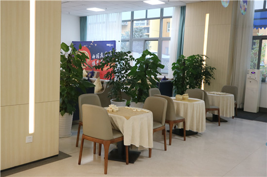 頤心源長(zhǎng)者照護(hù)中心的內(nèi)部環(huán)境風(fēng)格則是以深深淺淺的綠色色調(diào)呈現(xiàn),這里除了做照護(hù),也開設(shè)了日間照料中心,為社區(qū)周邊的老年群體提供用餐服務(wù)。上午正是長(zhǎng)者精神好的時(shí)候,不少長(zhǎng)者在參與興趣活動(dòng),有的在練習(xí)書法,有的在下棋,還有的在專人指導(dǎo)下進(jìn)行康復(fù)訓(xùn)練。