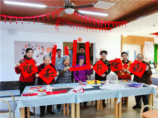 迎新年,光看節(jié)目表演可不夠,咱們長者也要齊上場。這不,現(xiàn)場寫下的大紅對聯(lián)和喜字上了墻,過節(jié)的氣氛就有了,看這桌邊揮毫潑墨的可是來自長辛店街道的書法大家,長者也跟著教學(xué)課程,一起動手做了不少春節(jié)小掛飾,用掛飾妝點(diǎn)我們的機(jī)構(gòu),自己動手更有年味!