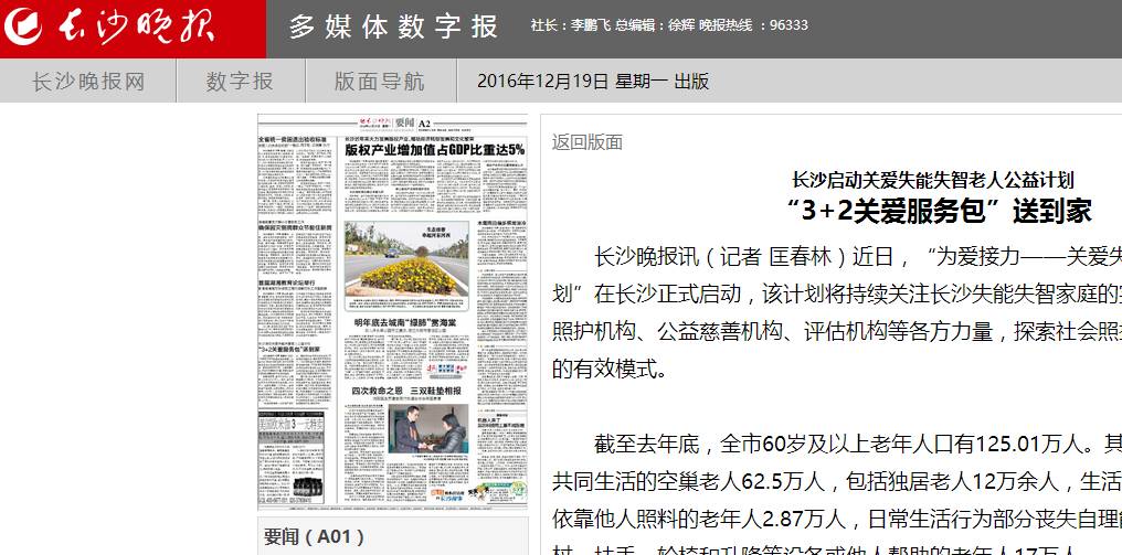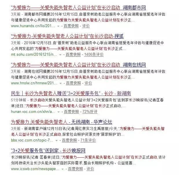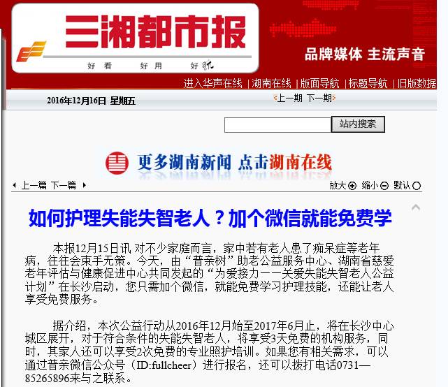 此外包括快樂(lè)老年報(bào)、紅網(wǎng)、搜狐、湖南都市網(wǎng)、湖南在線網(wǎng)等媒體紛紛對(duì)“關(guān)愛(ài)失能失智老人公益計(jì)劃”進(jìn)行了報(bào)道。