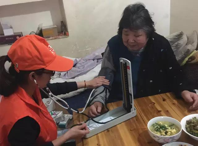 ▲師大醫(yī)學(xué)院志愿者們?yōu)殚L者進(jìn)行血壓、血糖的檢查